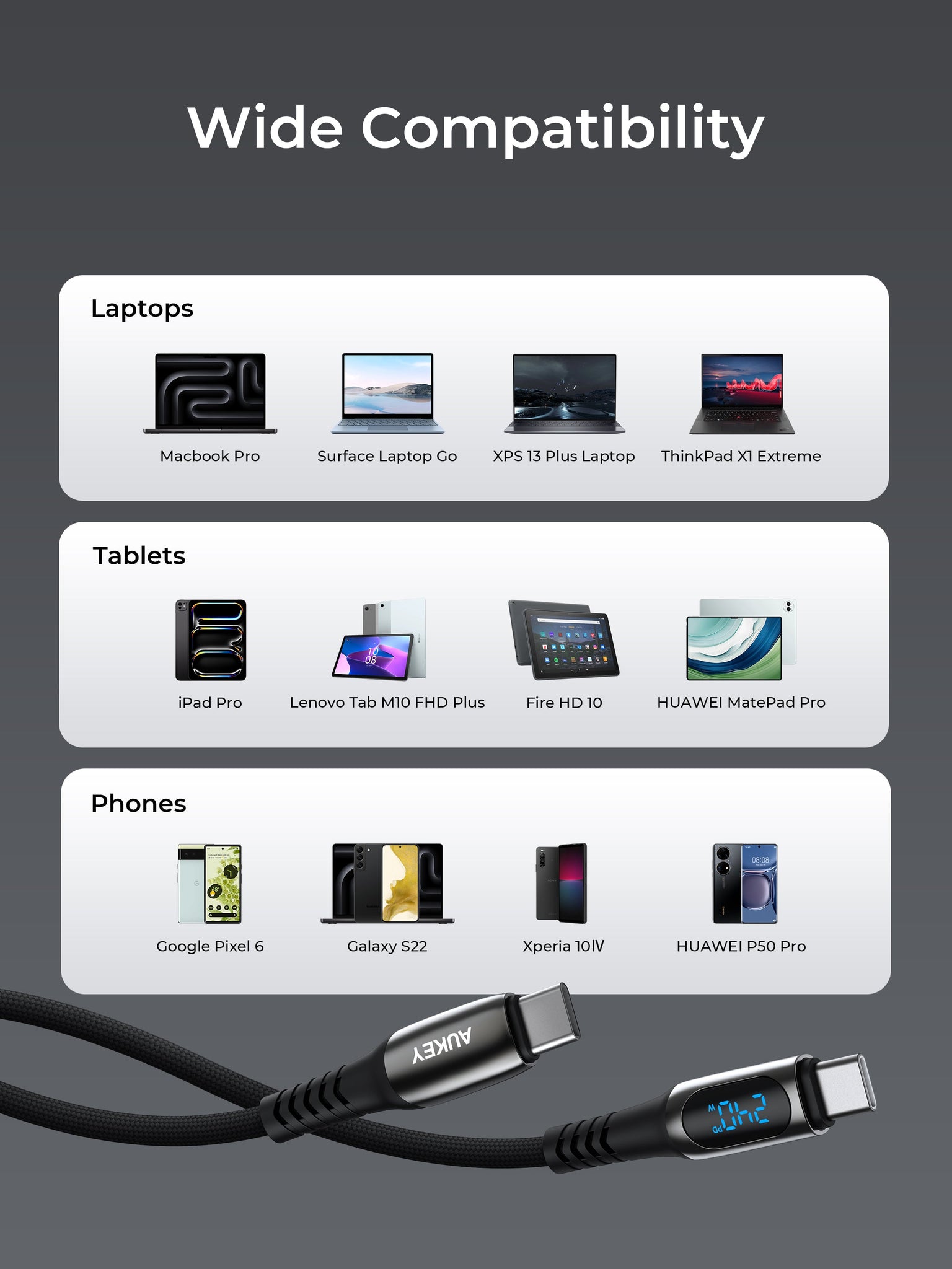 Full Speed Charging: Compatible with 100W chargers for fast charging across a wide range of USB-C devices,